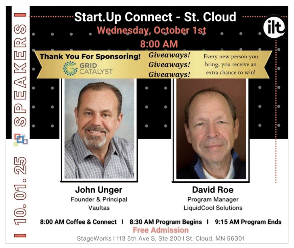 Thank you to our friends at the Greater St. Cloud Development Corporation and Grid Catalyst for inviting Team LCS and Vaultas to present at today’s Start-upConnect.
